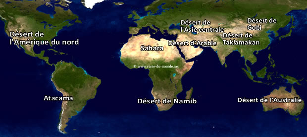 Sahara, climat est Subtropical, la Superficie est de 9 065 000 km², les pays sont Algérie, Égypte, Libye, Tchad, Mauritanie, Maroc, Tunisie, Soudan, Niger, Mali.