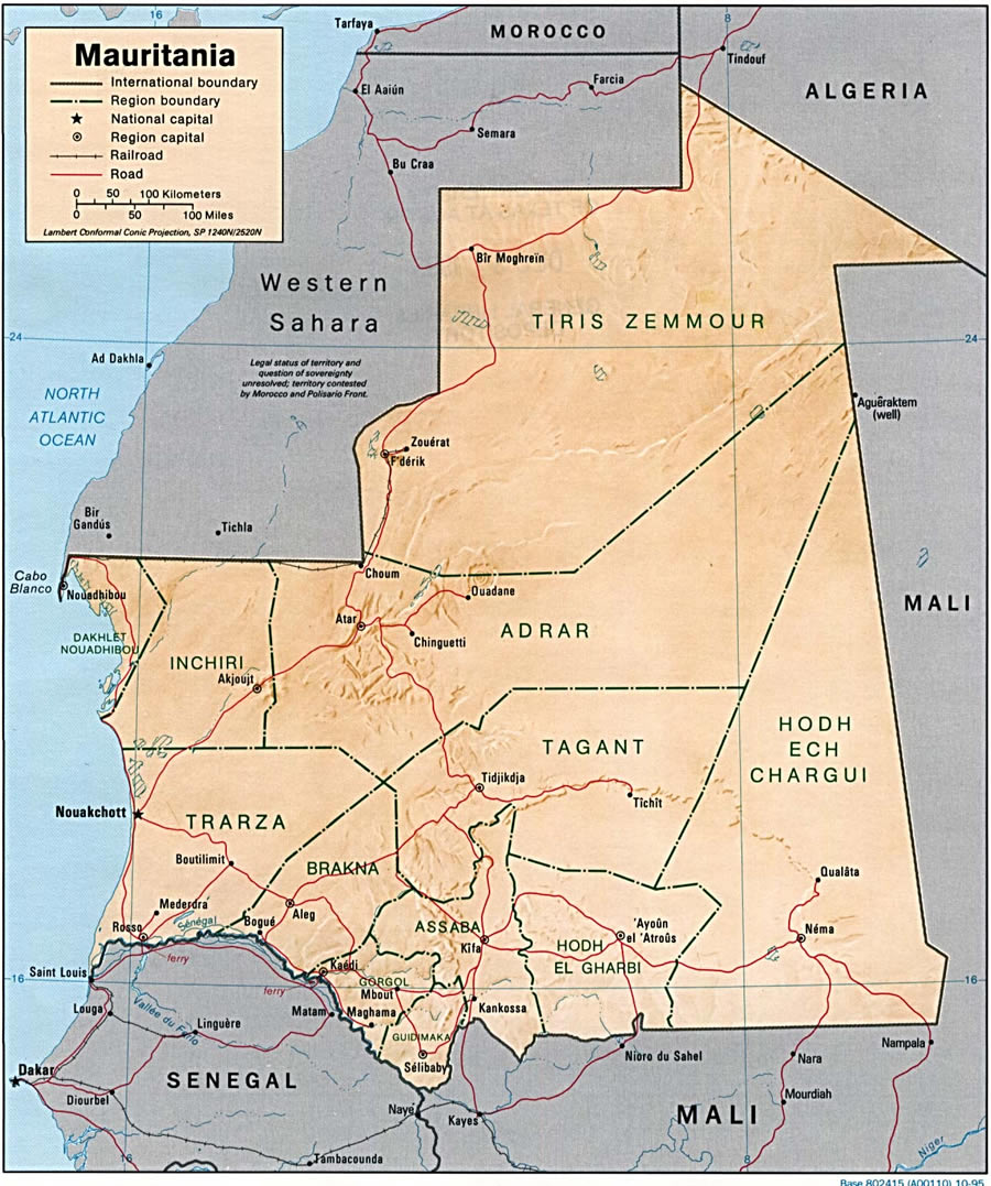 La Mauritanie, officiellement République islamique de Mauritanie, est un pays d'Afrique de l'Ouest. Elle est bordée par l'océan Atlantique à l'ouest, le Sahara occidental au nord-ouest, l'Algérie au nord-est, le Mali à l'est et au sud, et le Sénégal au sud-ouest. La géographie Mauritanie est largement dominée par des paysages désertiques, le Sahara couvrant près des deux tiers du territoire, avec des plaines arides, des plateaux rocheux et des dunes de sable spectaculaires comme celles de l'erg Ouarane. Le fleuve Sénégal, au sud, constitue la principale zone de vie et d'agriculture du pays. Pour visualiser son étendue et ses frontières, une carte Mauritanie détaillée est essentielle.